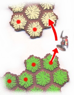 one hex in size, is created. If the player has previously rolled