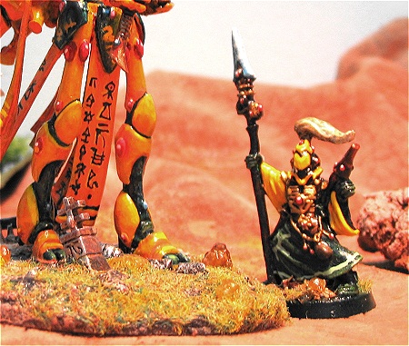 Rodyn Dolenhoth is the first to arrive at Beleg's side, to aid his Wraith Sight abilities to Beleg's progress. "Now the Tau will truly know their doom" the Warlock's anticipation of victory is almost contagious as he contemplates the next encounter against those who've dared to set up residence on the lost home world of his ancient race. Now he is sure that this is indeed their ancient homeworld, lost to the Necron so very long ago. The Calentar Eldalon wander the Eldar Webway no longer. And the Tau will not desecrate their holy world any further. A lord of wraiths has come, and the pale blue blood of the Tau will stain the sand.