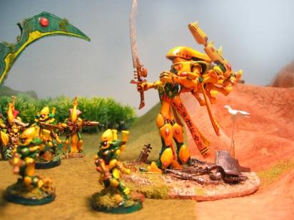 Guardian troops soon lead the heroic giant to their hidden Eldar base. Plans must be made.